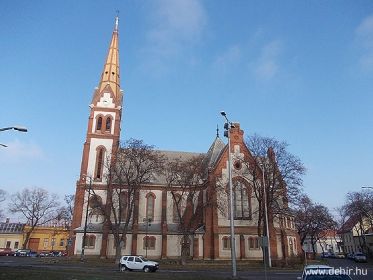 Az 1888-ban átadott, neogótikus templomot Pecz Samu tervezte, a faliképeket pedig Haranghy Jenő (1936-ban). A megvalósítás költségeit a hívek adományai mellett zömmel a néhai főbíró Szombathy Istvánnak és az özvegyének, Veresmarthy Zsuzsannának az alapítványa fedezte.